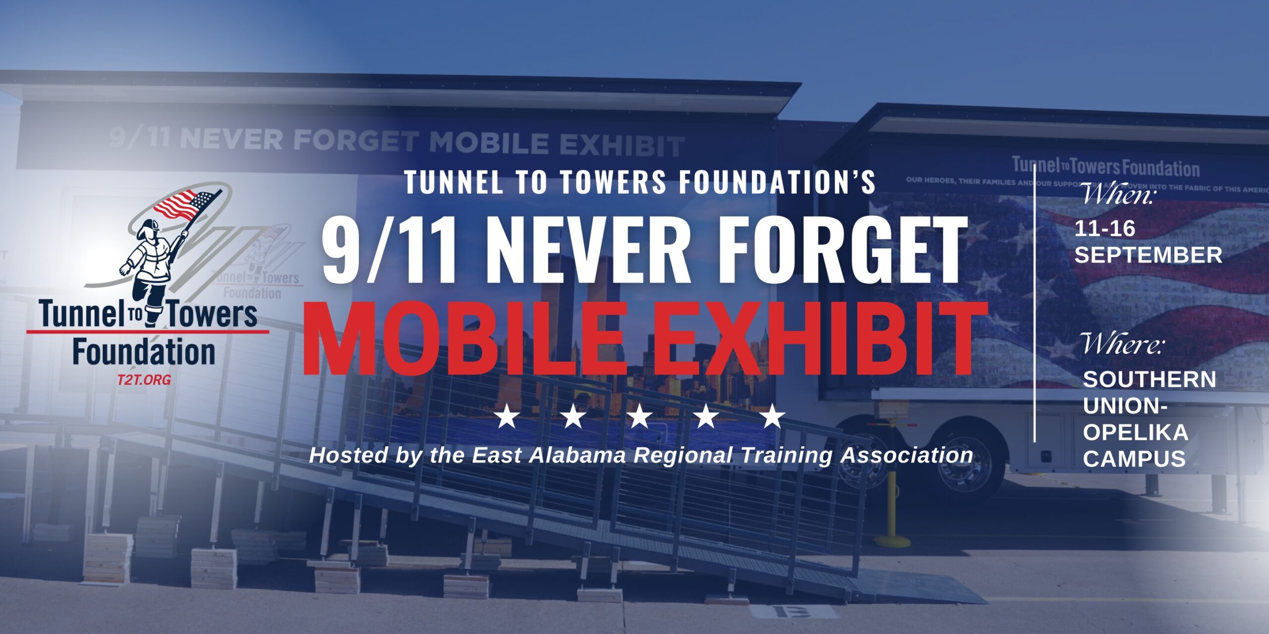 The Alabama Fire College is honored to stand alongside the East Alabama Regional Training Association (EARTA) as a proud sponsor of a historic and powerful event coming to our state for the very first time: — the Tunnel to Towers 9/11 NEVER FORGET Mobile Exhibit.